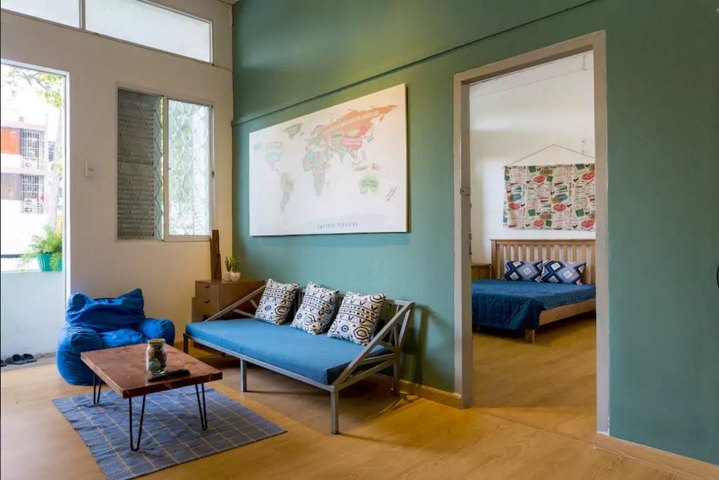 Căn hộ được Vuông Tròn Giác thiết kế theo phong cách tối giản, tận dụng ánh sáng tự nhiên, gam màu xanh dịu và nội thất gỗ, tạo không gian sống thoáng đãng và thư thái.