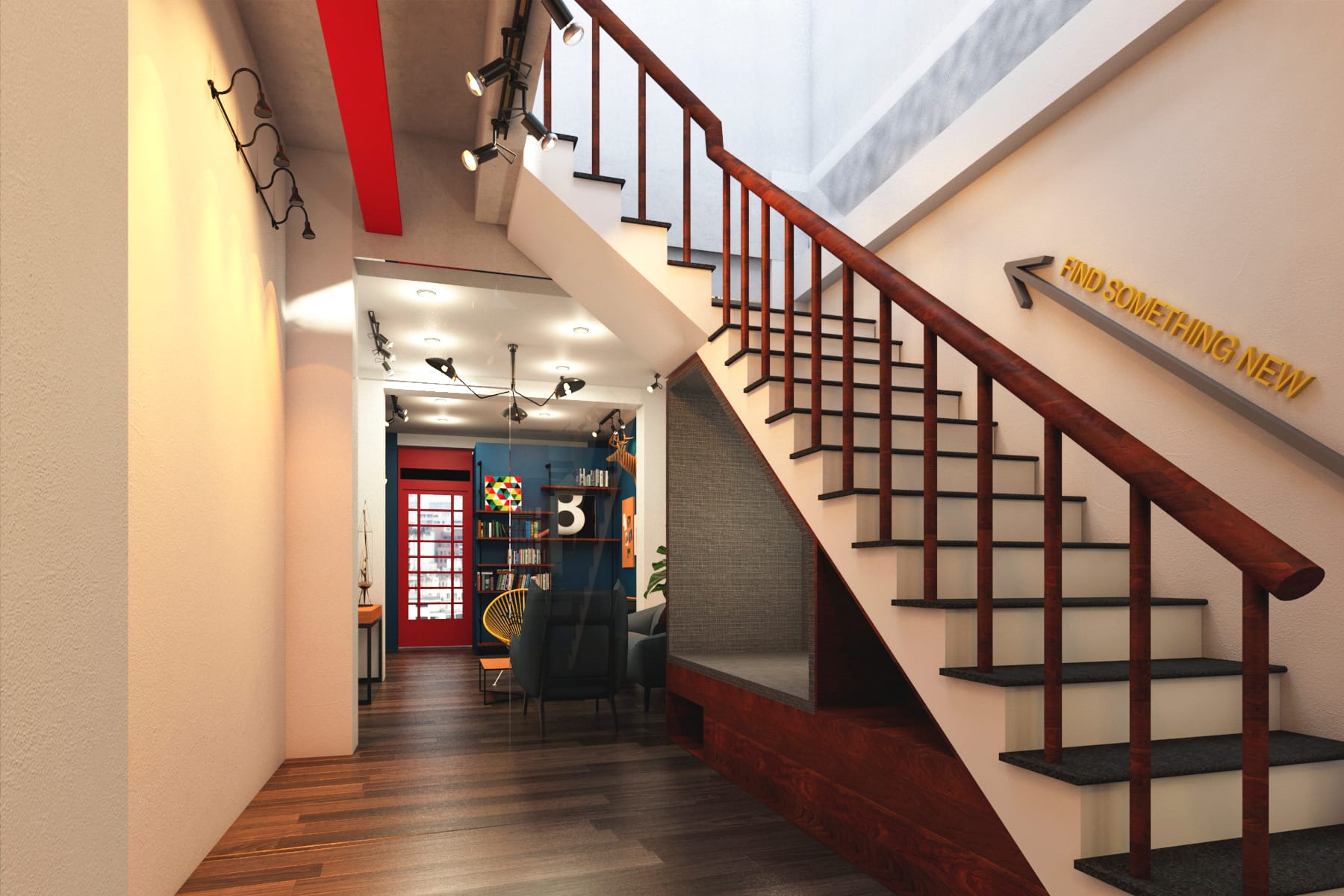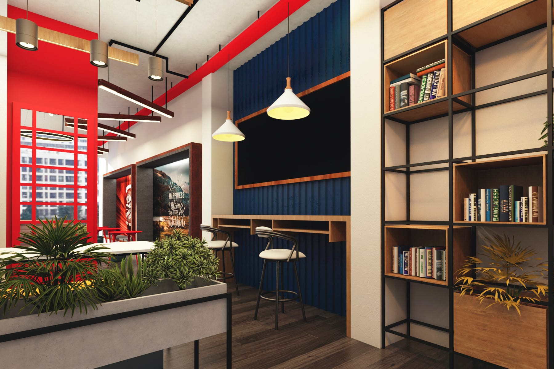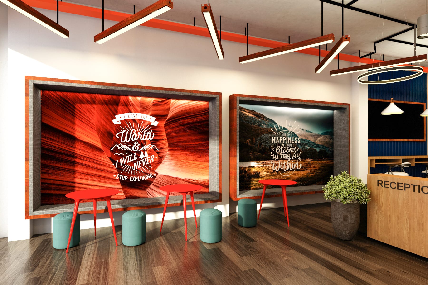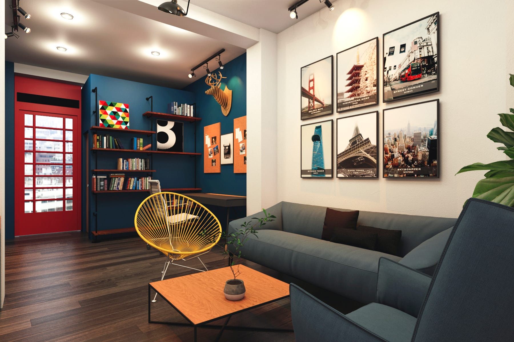 Vuông Tròn Giác – Kiến tạo không gian sáng tạo và truyền cảm hứng! Chúng tôi mang đến Không gian được kết hợp giữa Sắc đỏ năng động làm điểm nhấn, hài hòa cùng trắng, gỗ trầm và xanh lam, tạo nên không gian vừa sáng tạo, vừa gần gũi.